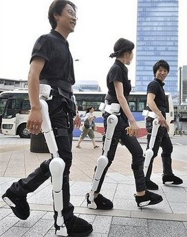 Bộ quần áo rô-bốt đang được thử nghiệm trên đường phố ở thủ đô Tokyo, Nhật. Hai người đàn ông và một phụ nữ mặc trang phục nhìn giống như một bộ xương plastic trắng trên bộ quần áo màu đen, đang thử nghiệm đi bộ với vận tốc 1,8 km/h. Bộ quần áo rô-bốt này được thiết kế dành cho người tàn tật hoặc chân đang thị thương.